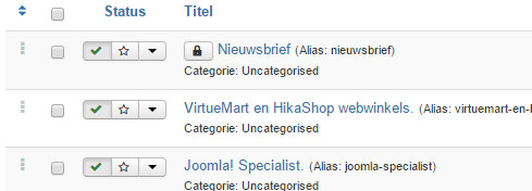 Op elk gezet moment kun je in het Joomla! backend een hangslotje tegen komen. Dit slotje zie je bijvoorbeeld bij artikelen, menu items, modules etc.